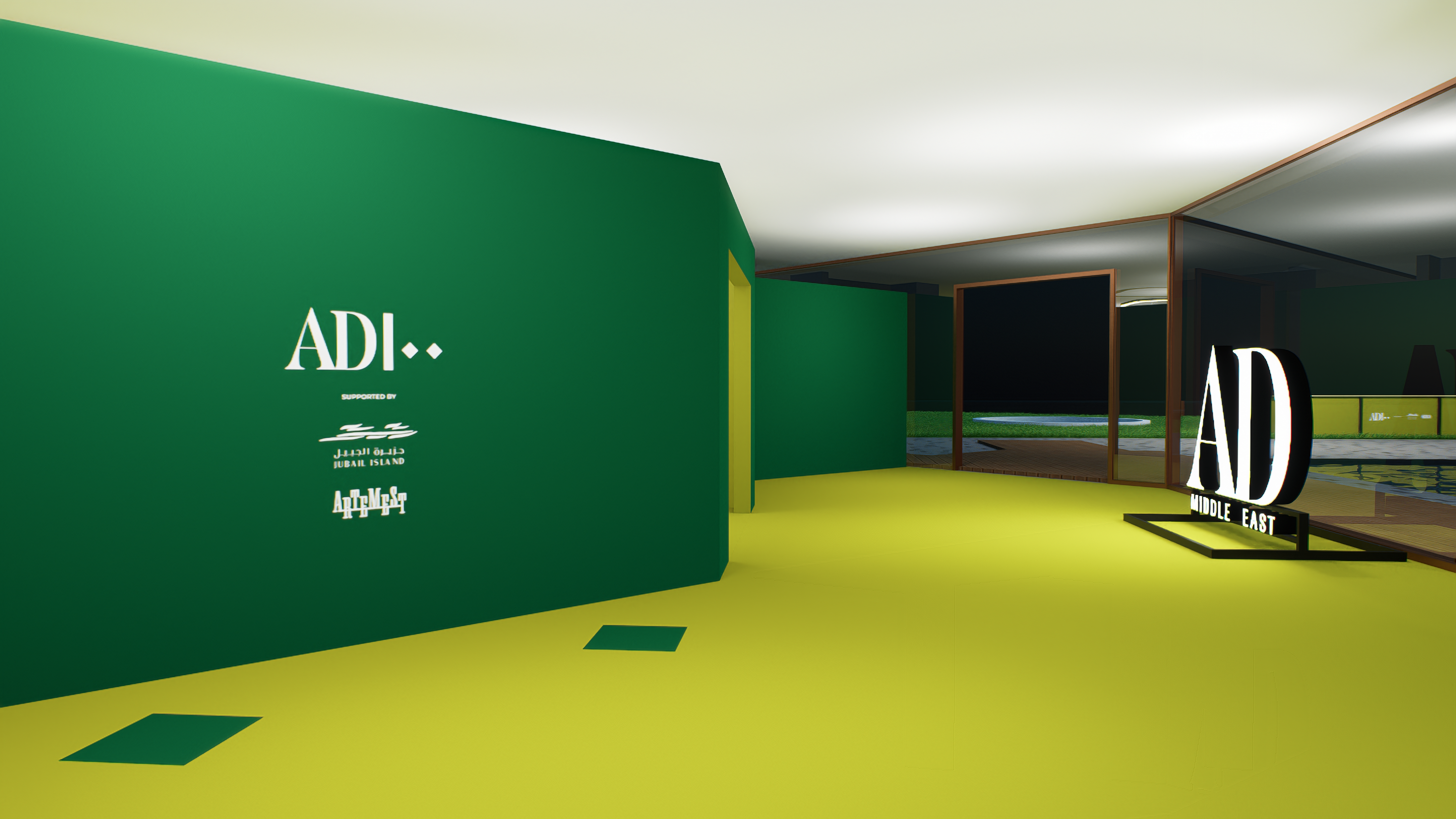 The AD100 Ceremony in Abu Dhabi reimagines Architectural Digest’s iconic visual identity into an immersive, surrealistic setting that bridges the past, present, and future. At its core lies the lozenge shape, a signature motif from AD’s branding, which informs the architectural features, from glowing niches displaying the Top 100 designers to the stage and buffet areas. Two harmonious tones of green, symbolizing growth and renewal, dominate the palette, weaving through bold geometric facades and scenographic minimalism to create a cohesive visual narrative. Reflective surfaces amplify the design, blurring reality and crafting a dreamlike atmosphere where light, shadow, and form converge in cinematic intrigue. A touch of ethereal pink, inspired by James Turrell, punctuates the venue, contrasting dramatically with the dark desert sky and inviting guests into a realm where timeless artistry meets avant-garde innovation.